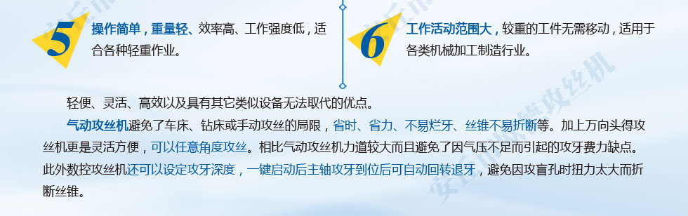 地設計和售后服務。追求高品質滿足用戶需要為己任,我公司近十年來,是一支裝備精良的團隊。我們一直堅持以氣動攻絲機